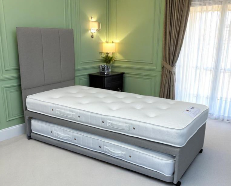 Benefit from the sleeping capacity of a larger bed, yet only take up the space of a single bed when not in use, by opting for a a guest bed. This type of bed for one guest, with the added flexibility to pop-out the second mattress to accommodate two guests.